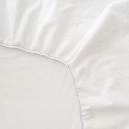 Protecting the mattress from little accidents and stains, our super soft terry towelling fitted mattress protectors are lined with a waterproof 100% PU layer. With strong elasticated edging that keeps the protector in place all night long without sagging or rucking. This lightweight fitted mattress protector is crafted & hand finished in England using only ethically sourced, organically grown white cotton.