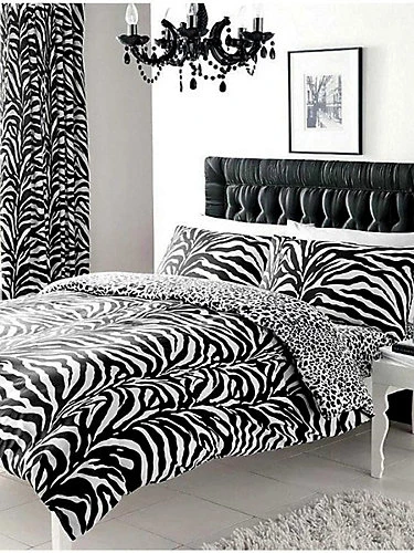 This stunning Zebra and Leopard Print contemporary double bedding set will add a unique finishing touch to your bedroom. It features a black and white zebra print design on the front and a matching leopard print pattern on the reverse, meaning you receive two designs for one great price. Made from a polycotton blend, this bedding set can be machine washed and tumble dried on a cool setting.